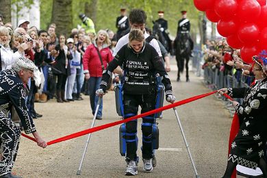 في ماراثون لندن باستخدم سيقان روبوتية سمحت لها بالمشي مجددًا.