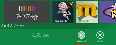 * أضغط على زر الماوس الأيمن سوف يظهر لك خيارات بالأسفل من ضمنها إلغاء التثبيت