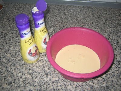 أثناء إذابة الشوكلاتة نبدأ بخفق الكريما ،