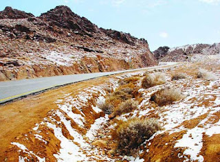 وقد عاشت تبوك أجواء متقلبة اليومين الماضيين ما بين رياح شديدة تفاوتت فيها درجات الحرارة ما بين 2 إلى 8 درجات إضافة إلى الأتربة العالقة في أجوائها مما تسبب في تدني الرؤية الأفقية خصوصا وسط مدينة تبوك. الإ أن مرتفعاتها الواقعة غرب المتمثلة في جبل اللوز وعلقان والشاطي عاشت امس أجواء مغايرة توشحت فيها بكتل الثلوج.