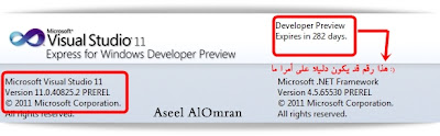 وفي نظام يوجد نسخه Microsoft Visual Studio 11 Express
