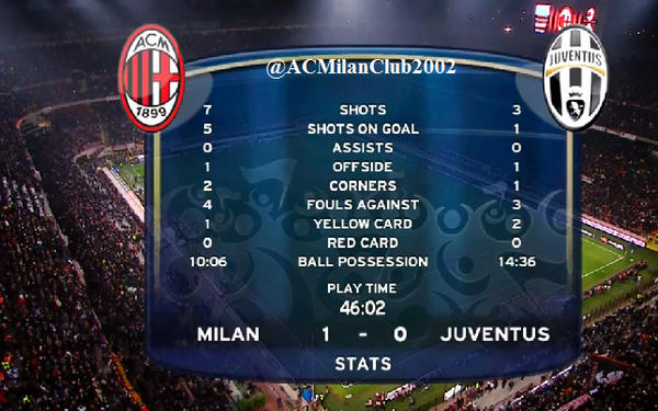 لكن ميلان تحصل على كم هجمة مرتدة ولم يستغلها.