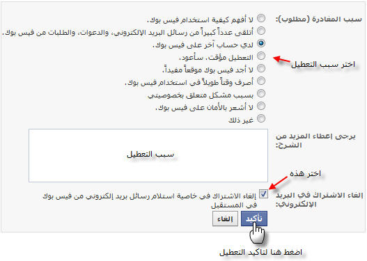 الإعدادات ====> إعدادات الحساب ========> تعطيل الحساب ====> تعطيل