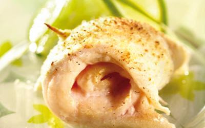 توضع في كل شريحة من السمك شريحة من الجبنة وتلف و تثبت باعواد صغيرة