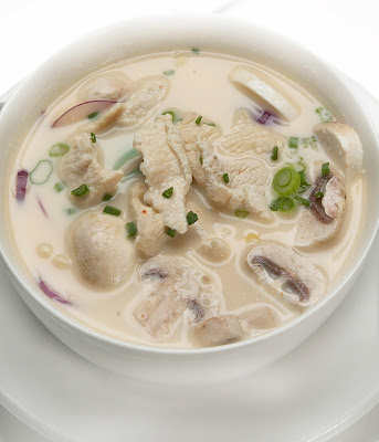 2. تغلى المرقة, ثم تخفف النار ويضاف لحم الدجاج المفروم الى المرقة ويطهى برفق حتى ينضج.